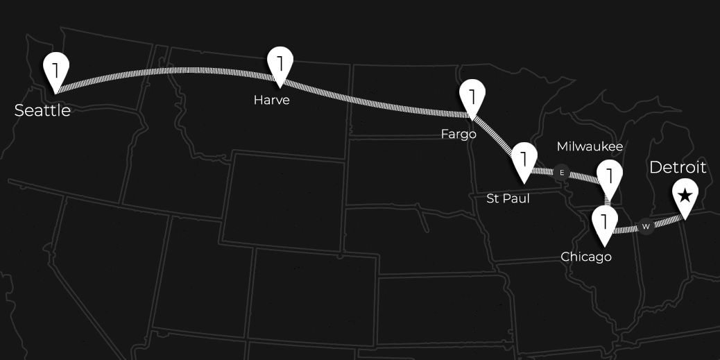 Traveling between Chicago and the Pacific Northwest along major portions of the Lewis and Clark trail, the mighty Empire Builder takes you on an exciting adventure through majestic wilderness, following the footsteps of early pioneers. From Chicago, you'll have magnificent views of the Mississippi and see the glowing night skyline of Minneapolis and St. Paul. The journey from Chicago to Seattle takes approximately 44 hours, covering a distance of 2210 miles and two time zones.